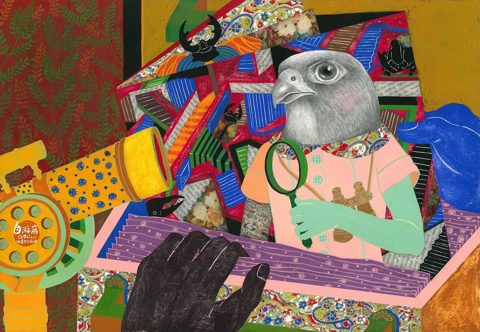 The invisible wings is Pei Han Chen's self-exploration of society, inspired by the fear, anxiety, and conflicts of modern people who have lost themselves in society. The series of works portrays two worlds in a space with a triangular composition, symbolizing two different feelings of reality and the inner self. The contrast between realism and fantastical childhood abstractions represents our growth in the non-fairytale world and our longing for freedom from the shackles of reality.